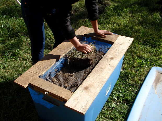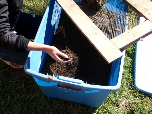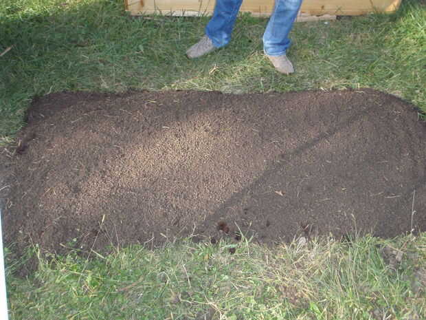 2. tamizar plazas a través de una pantalla de alambre para filtrar hacia fuera el suelo utilizable. Deseche la hierba y rocas.