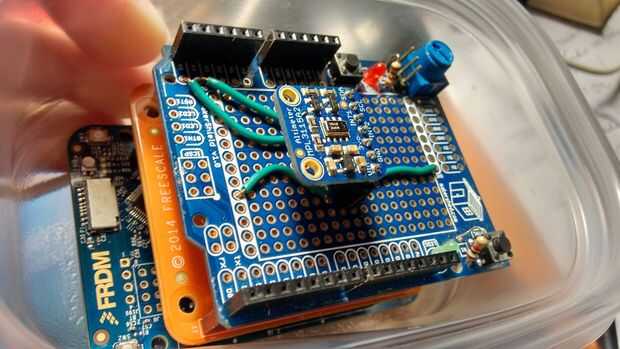 El Freescale K64F FRDM Dev Board y FRDM-STBC-AGM01 9-eje inercial medida tablero del Sensor que conseguimos para que nuestro EurekaFactoryInstructables agosto construir combinado con Freescale MPL3115A2 barómetro y termómetro demostró para ser muy rentable y configuración electrónica fiable recabar la información que queríamos.