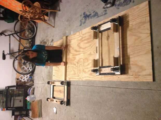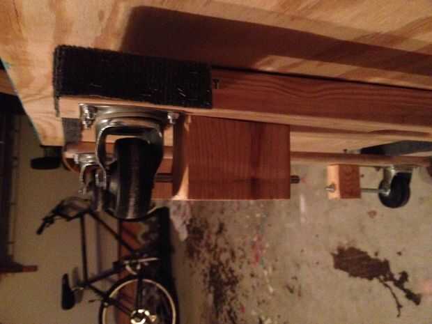 3. Inserte el perno más grande lanzó la rueda y el de 2 "x 3", atornillar el 2 "x 3" con dos maderas tornillos y y para evitar próximo tornillo flojo el tornillo final vino con el piano mover ya en él (repetir en todas las ruedas de 8)