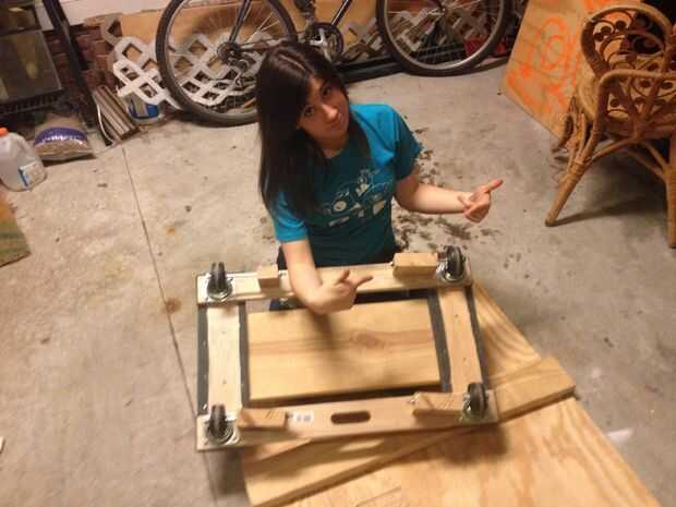 4. Haga una tabla de 2 x 6" en la parte superior el mover piano creando una tapa para las ruedas. Usé dos clavos en ambos lados haciéndolo cuatro clavos por placa.