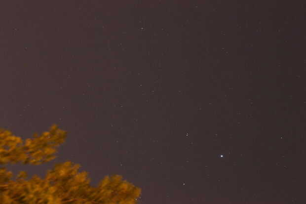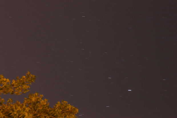 Acabo de terminar mi primera prueba del equipo y estoy muy contento con los resultados iniciales. Realicé una alineación muy áspera del sistema Polaris con el laser verde. Entonces utilicé el software de visualización en vivo remoto con mi Canon línea y disparar a dos imágenes de la prueba. La primera ilustración muestra una captura 60 segundo del cielo occidental desde mi patio con la montura Ecuatorial dedicada. El segundo golpe fue configurado con ajustes idénticos, pero con la montura Ecuatorial apagado. Ambas fotos fueron tomadas con un 100MM Macro de L a ISO 400. La diferencia entre las dos tomas es muy pronunciada.