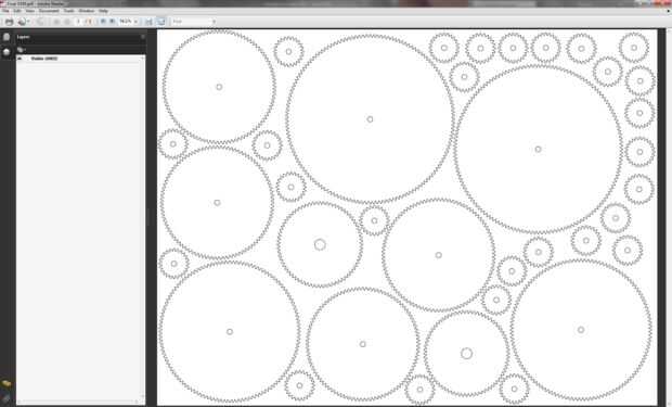 A continuación, abra el archivo en illustrator. (Ver tercera ilustración). Después de carga el archivo primero debe seleccionar todo el plano y cambiar el ancho de todos los vectores .001pt o más pequeño. El controlador de láser de Epilog requiere una línea muy fina que se interpretará como un vector de corte. Si se salta este paso el cortador del laser tratar los vectores como imágenes rasterizadas y sólo grabar las imágenes en la superficie del acrílico. Finalmente antes de imprimir las imágenes que el láser debe configurar el láser para los parámetros especificados, proporcionado por el fabricante para el material que está utilizando. Una vez hecho esto envía el dibujo sobre el cortador láser y comenzar el corte!
