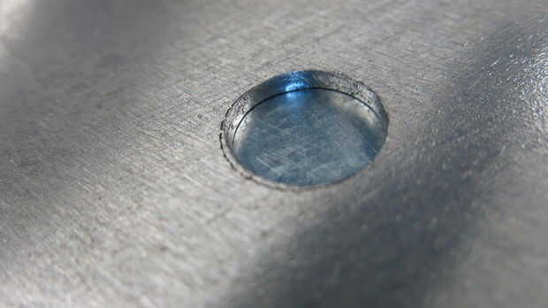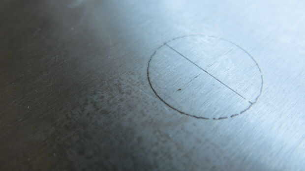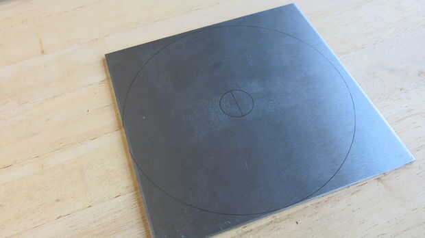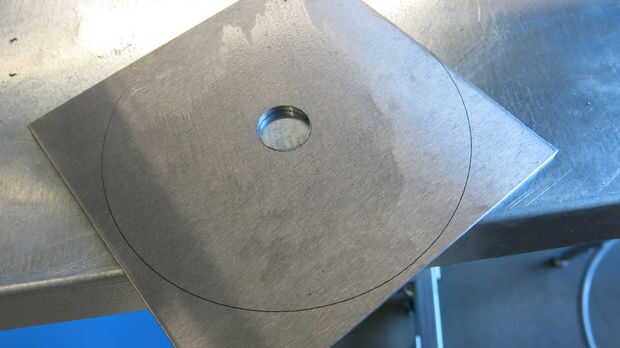 - Use un cortador láser para marcar un 6 "x 6" pieza de chapa de acero inoxidable.