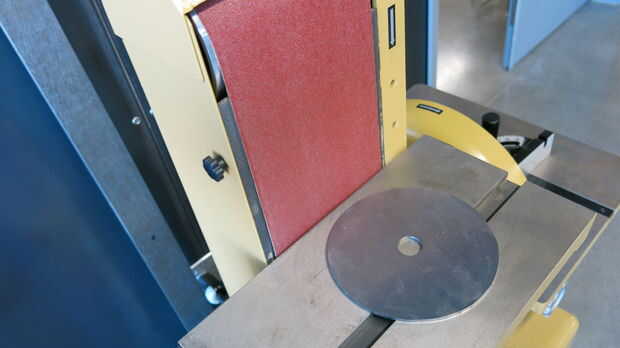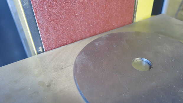 - Use una sierra de cinta vertical para cortar tanto del círculo como sea posible y use una lijadora de banda vertical para suavizar los bordes. Esto hará que nuestra "placa de admisión, similar a la"placa de extremo"en el último paso.
