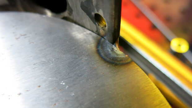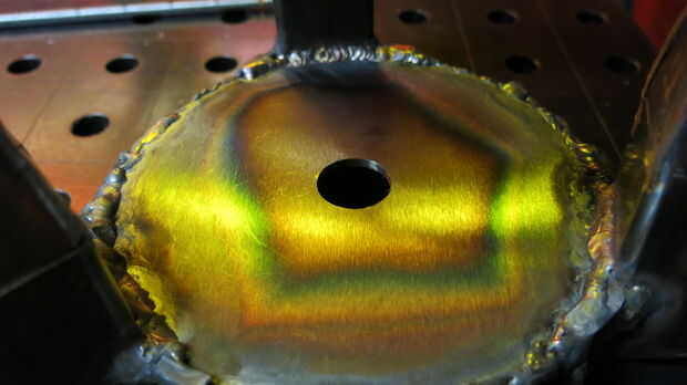 - Alinee los tubos de llama, placa de admisión y la placa de extremo, todos juntos, con la varilla roscada que se convertirá en el eje. Soldar la placa de admisión a los tubos de llama.