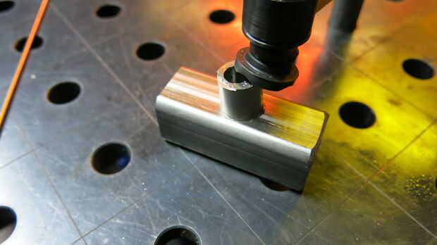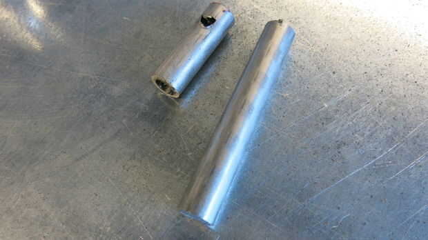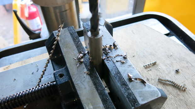 • Perfore dos agujeros de 5/8" en pequeños trozos de tubo cuadrado acero inoxidable del diámetro de sobra 1".