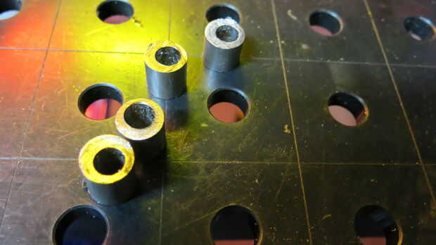 • Restos del metal de hoja, cortar rectángulos, arreglar con un agujero en el centro y soldarlas juntas.