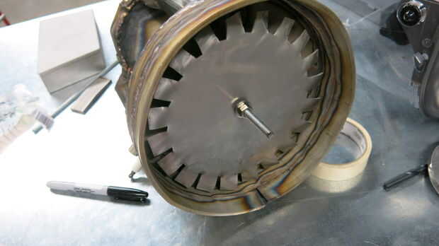 - Consumo: elegí un compresor centrífugo para mi compresor de admisión. Un compresor centrífugo aspira aire desde su centro y obliga a su borde exterior. Elegí este tipo de compresor porque esto me permite poner mis tubos de llama en el exterior del motor y mantener el calor de la combustión lejos del eje del motor. Mantenimiento de calor tanto como sea posible de piezas móviles mantendrá el motor en marcha más largo y más seguro (con suerte). Además, sabía que podía encontrar un compresor centrífugo en un motor de aspiradora, por lo fue una parte no tengo que hacer.