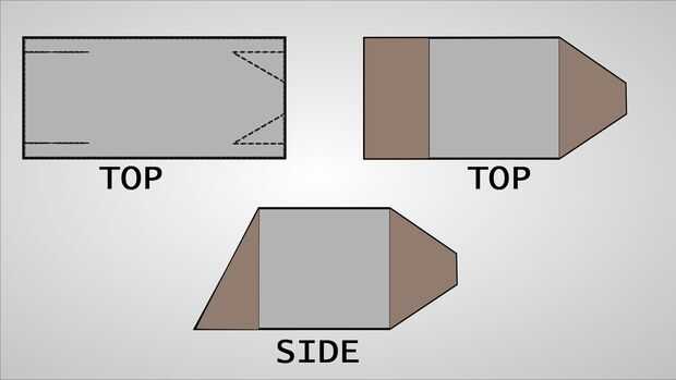 - Corte una forma de cuña de la tubería a cada lado, pero la corte de los dos puntos al final de cada línea de corte.