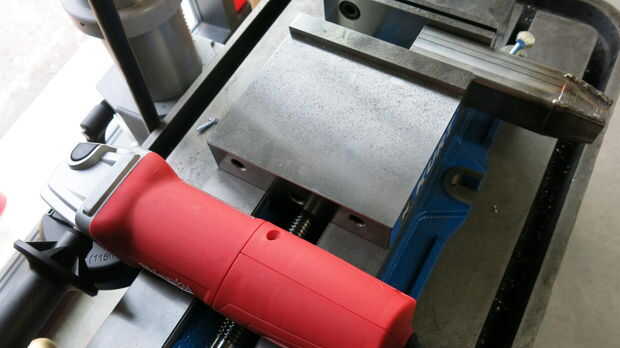 Un 7/8" agujero fue perforado en el centro de 1.5" de diámetro tubo cerca el extremo angular.