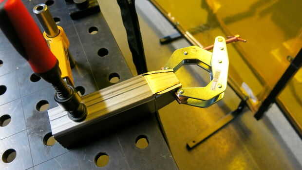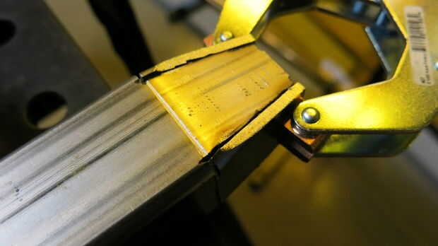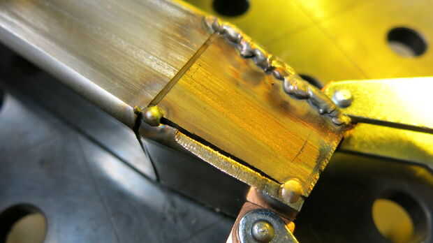 Multitud de abrazaderas fueron utilizados para empujar y aplasta todo donde necesita estar para hacer posible todas las soldaduras. Hace referencia a las imágenes es probablemente la mejor manera de entender lo que quiero decir, y lo que podría funcionar mejor para sus necesidades de soldadura. Cordones de soldadura feos fueron molidas usando una amoladora.