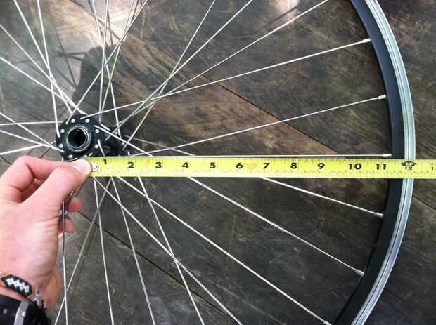 Mi rueda de la bici es de 26 pulgadas de diámetro. Por lo tanto, cada radio tiene una longitud de 11,5 pulgadas.