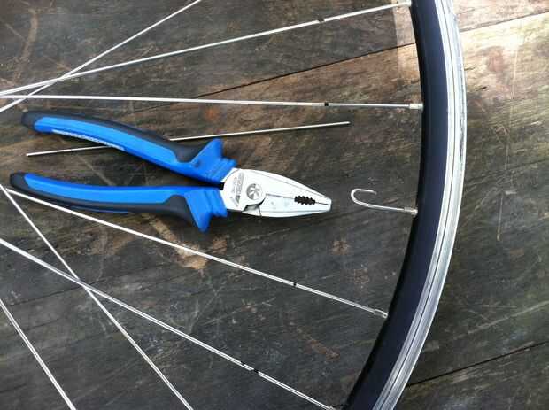 4. Vuelva a colocar la pieza de aluminio doblado en el eje. 5. doblar un gancho en la pieza de aluminio de la llanta con pinzas o perno cortadores para tener un gancho en el extremo de "corte".