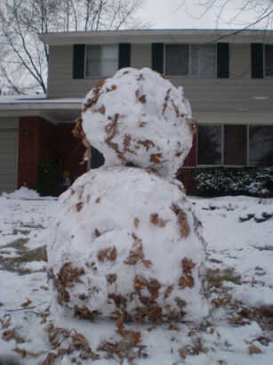 Como he mencionado anteriormente nuestro muñeco de nieve estaba cubierta con una capa shaggy de hojas, debido a mi pereza durante la caída. Esto puede ser remediado por cepillado y luego cubre los restantes con nieve limpia. Su muñeco de nieve pronto estará limpio y ordenado, listo para recibir su rostro.