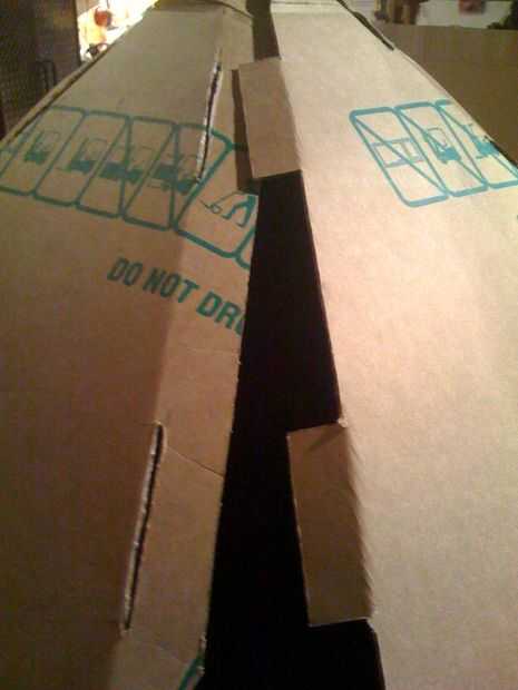 Utilizando una regla recta, marque y corte los ángulos superior y pestañas. Cada panel es de 2 pies de ancho porque mi caja era total 12 pies.