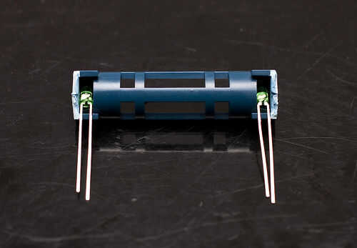-ahora conecta ambos conjuntos de LEDs con el esmalte alambre y soldadura para que tenga una configuración de circuito en paralelo para cada uno led