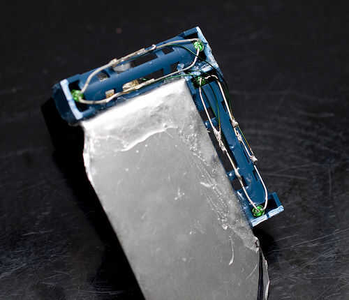 -un alambre de la soldadura al – terminal del portapilas y soldadura entonces el otro extremo hacia el – el circuito de led