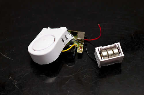 -soldar un cable a la terminal del soporte de la batería a uno de los terminales del interruptor y ejecutar un trozo de esmalte del alambre de la terminal del interruptor contiguo y soldadura que + la + parte del circuito del led