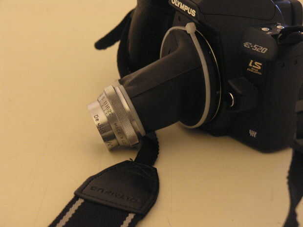 Necesitarás:1. MC Biometar 80mm lente de f/2,8 (yo tengo la mía por $60).2. M42 macro rings($10).3. M42/nikon/canon converter($10).4. un 2,25 pulgadas largo pedazo de llanta de bicicleta.5. abrazadera.6. 20 minutos.Esto es proyecto realmente fácil y