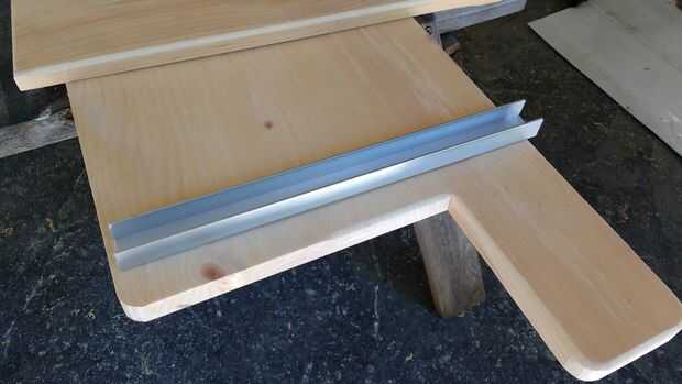 El piso de madera de 24 "X 48" fue recortado a 42.5 "y unido al tablero con pegamento y tornillos. Se agregaron dos escuadras para reforzar la conexión. Ver el siguiente paso para obtener una imagen.