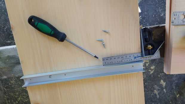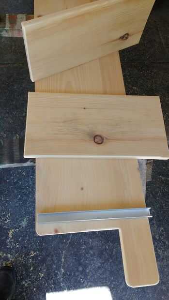 El canal de aluminio fue cortado a longitud (13") usando un hack vio, presentada para eliminar la fuerte cortar esquinas y fijado a la pared base y trasera con 5/8" tornillos. Los canales sostenga los divisores en su lugar. Posicioné para acomodar contenedores de tamaño estándar (16 "X 24").