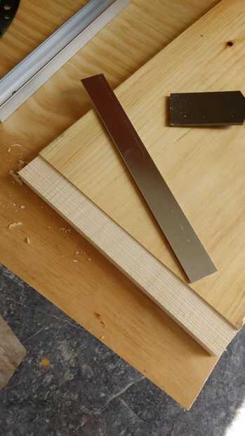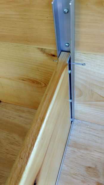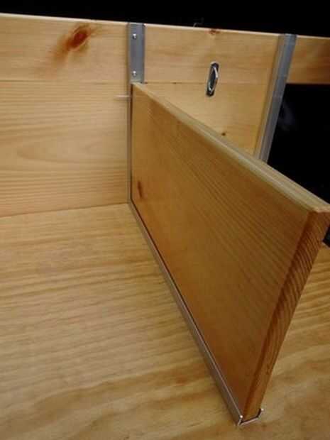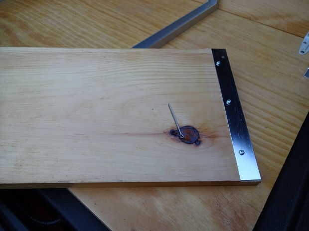 Los divisores fueron cortar 18" de longitud, redondeados sobre y corte de la acción de pino de 1 X 10. He decidido reforzar el un extremo del divisor mediante la adición de una longitud corta de aluminio plano común. Esto requiere una pequeña cantidad de madera para quitar, utilizando la Sierra de mesa, de modo que el aluminio se sentaría al ras con el divisor de pino. El agujero en el extremo superior de la barra de aluminio fue perforado para tomar el pasador que tiene el divisor en su lugar.