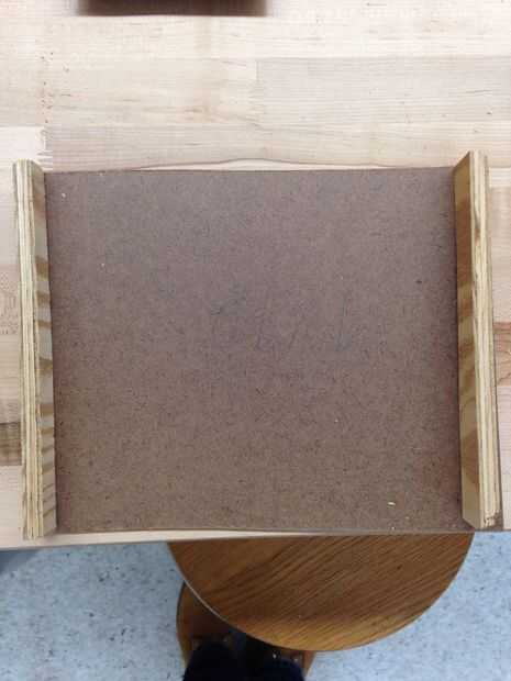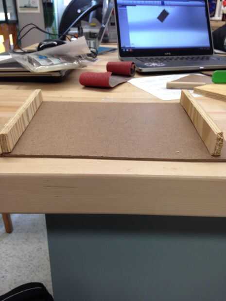 Obtener una pieza de 9 x 12 de tablero compuesto y poner sobre la mesa como su base. Una vez que su base se encuentra sobre la mesa, poner las piezas de 9 x 1 de madera en los lados de la base. Vas a tener que pegar caliente hacia abajo.