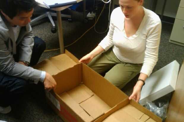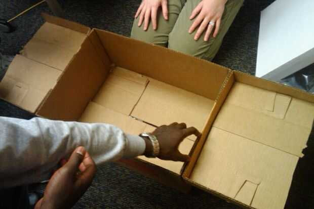 La parte superior de la caja debe abrir desde el centro hacia afuera.