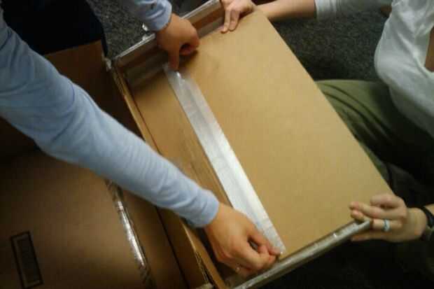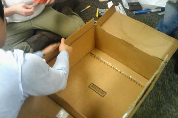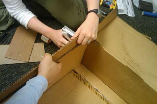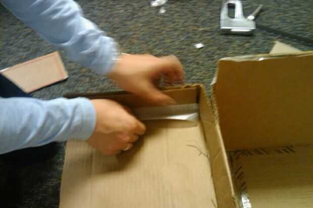 Cartulina de refuerzo es añadido a lo largo de la cara. También se agrega adicional de cartón a la tapa. Le cortan un pedazo grande de cartón (sobre el tamaño del panel superior). Esto servirá como suponga que cuando la tapa esté cerrada. Sólo conecta el cartón para uno de los lados, y este será el primer equipo que se cierra.