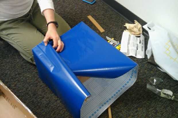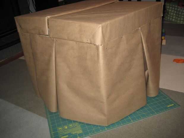 Para terminar el look de tela rica de la otomana, que envuelva la cosa entera en papel de embalaje marrón.