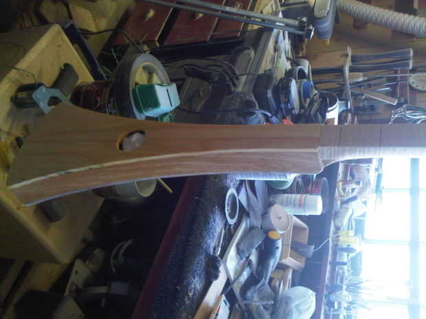 un divertido construir usar algunos recortesSe trata de un palo de rasgueo de 3 cuerdas (también conocido como Stick Dulcimer)Longitud de la escala será de 650mm (25,59")Pegamento usado es TiteBond OriginalMadera (de izquierda a derecha)CuerpoCaoba (