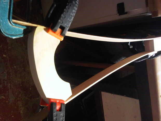 Lo que hace un palo toque tan agradable como una primera construcción de instrumento de tiempo es la simplicidad de las piezas. Por ejemplo, los lados tienen curvas simples y elegantes que vienen naturalmente. Los lados simplemente pegar en el cuello y el bloque de cola fija la curva. Usé algunas Piceas duro agradable para el bloque de la cola. Simplemente dibujé sobre un 4 pulgadas por 2 pulgadas óvalo con la pintura de la PC, imprime y recorta la forma. Las imágenes ilustran mejor cómo funcionaban las cosas. Con algunos doble cinta adhesiva fija el patrón para la acción y utilizar la tronzadora y Banco lijadora para conseguir la forma que necesitaba.