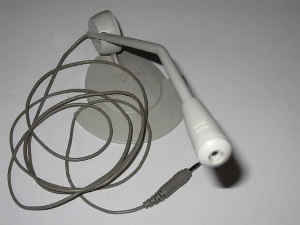 2. un micrófono de computadora sin usar, especialmente uno con un montaje de estilo palo y cuerda larga.