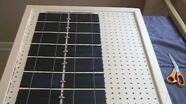 Para ayudar a dar el interior del panel solar un aspecto más agradable, usé 2 tiras de wiremold y funcionó los cables dentro de aquellos. Esto también se observa en la parte 7 y parte 8 del video. Después, tomé el panel fuera en el sol para probar la tensión del panel entero para asegurarse de que me metía 18 voltios y 3,5 amperios en un circuito abierto y corto circuito.