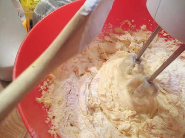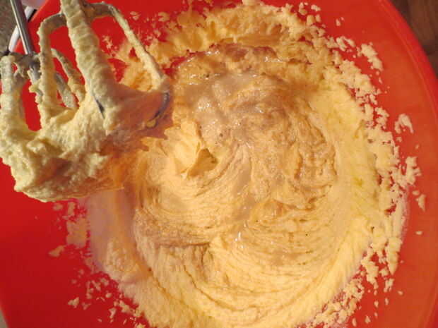 Ahora mezcle 375g margarina con 375g de azúcar en un tazón grande hasta que se una masa cremosa.