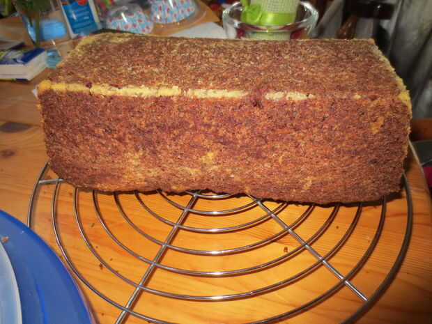 Sacar la tarta del horno y dejarlo reposar cinco minutos. Ahora volcar el pastel en una grate(kuchengitter) de torta y deje que se enfríe.