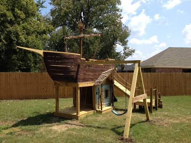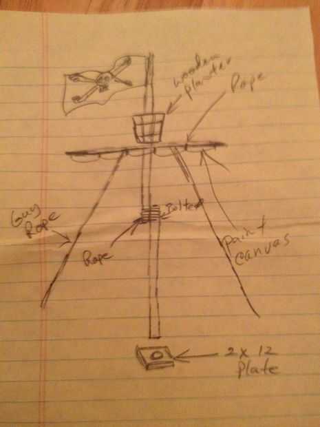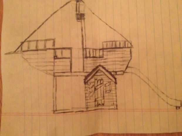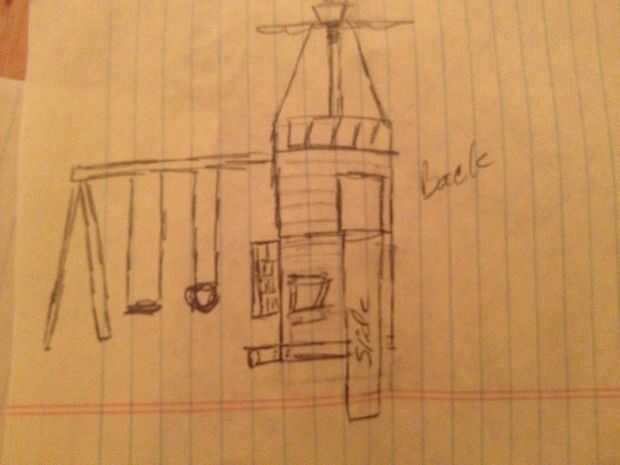 Empecé dibujando hacia fuera algunos basic bocetos de lo que pensé sería un aspecto fresco y elaborado algunas ideas básicas de la ingeniería. Nuestra idea era aprovechar los tamaños estándar de madera del decking/tratada disponible para minimizar el desperdicio. También hemos diseñado el patio para que todas las actividades podrían ser vigiladas desde el porche trasero de la casa (columpios, tobogán, entrada, etc.)