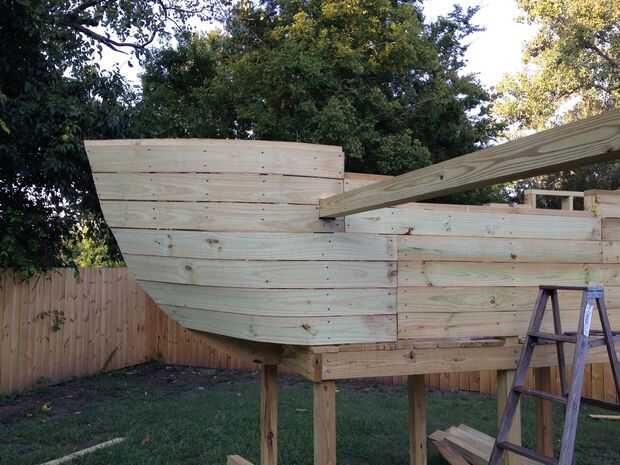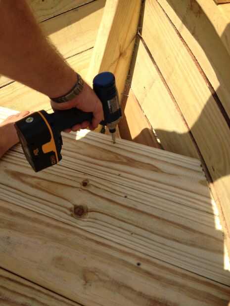 Luego instalamos tableros de cubierta en todas las superficies. Otra vez, ya que hicimos las cubiertas 4' amplia que podríamos maximiza el material de cubierta por corte los tableros estándar de 8' por la mitad.
