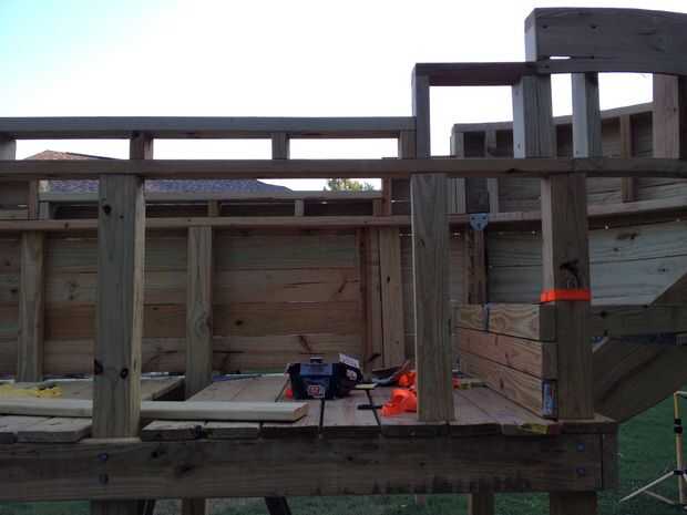 Se puede ver en las fotos Cómo construimos nuestra estructura. Otra vez, utilizamos el ancho de los piquetes como el estándar de medición de la altura.