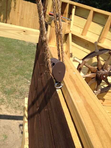Hemos añadido varios aparejo al mástil y extra entradas hasta el muelle. También hemos añadido columpios y tienen planes de instalar luces para que el barco puede ser iluminado por la noche para jugar o simplemente para observar el fresco de la casa.