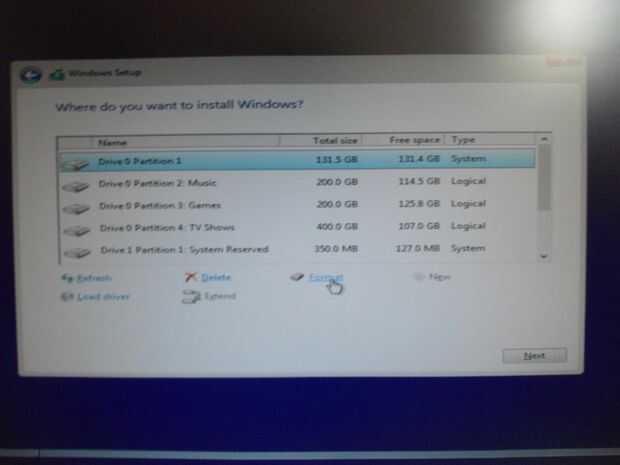 5. Si ha instalado un nuevo disco duro, necesitará crear una partición para instalar windows. Seleccione el espacio sin particiones y haga clic en nueva. Establecer un tamaño preferido de la partición para instalar windows. Tamaño recomendado es de más de 40 GB. Ya he creado una partición de 130 GB. Haga clic en siguiente.