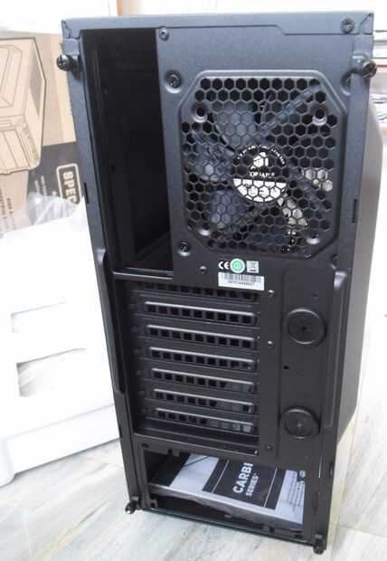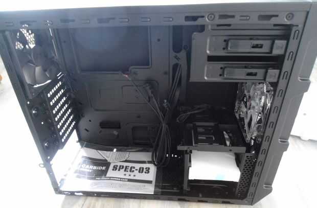 Según los componentes hemos seleccionado, y teniendo en cuenta presupuesto, te seleccione caja de Corsair Carbide Series SPEC-03 . Cuenta con una ventana lateral transparente grande, 2 USB 3.0 puertos en el frente y por supuesto audio puertos, suficiente fan monta en el frente, trasera y superior, filtro de polvo, 3 ranuras HDD, 2 ranuras SSD, hasta 7 tarjetas de pci-e, largo tarjetas gráficas compatibles, encaminamiento de cable e incluye un ventilador de LED rojo en el frente y un ventilador en la parte posterior dos de 120mm. Y sobre todo, se ve muy bien!