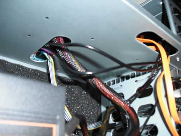 Gerencia del cable es prácticamente de sentido común. Aunque esto no se puede hacer en todos los casos de ordenador (algunos son demasiado pequeños o no han suficientes agujeros cortados en los lados), se utiliza en la mayoría de los que se encuentran hoy en día. Administración de cables se define como una manera limpia y simple para mejorar drásticamente la pulcritud del flujo de aire y caso (especialmente si usted tiene una ventana de caso y desea mostrar la configuración de su impresionante). Básicamente es tomar los cables de alimentación, cables SATA y los otros cables que residen en su caso y enrutamiento a través de diversos orificios en su caso. También puede dirigir los cables a través de diferentes espacios y componentes, tales como la placa base, para mejorar la limpieza y tal. Mira las primeros 5 fotos de abajo para un ejemplo.