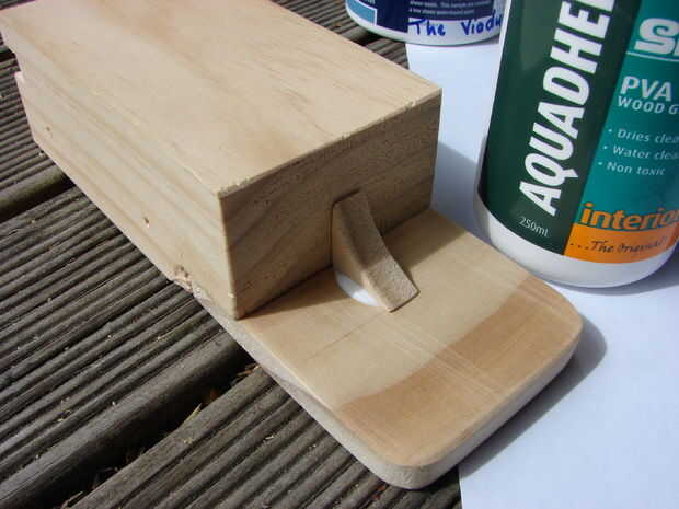 Bill Perry a enroscar, luego pegamento en su apoyo a proyecto de ley (centrado, al ras con la cara). Limpie cualquier exceso pegamento de madera. Después el pegamento, retire el proyecto de ley, listo para pintar.
