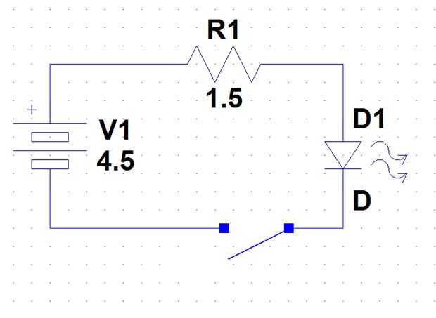 Construir el circuito como se muestra a continuación. El LED que utilicé fue un 3W LED base hexagonal funcionando a 3V y en 1A. El valor de R cambia dependiendo de qué la llevó uso y usted debería ser capaz calcular el valor deseado utilizando la calculadora de LED en http://linear1.org/.
