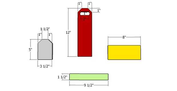 D - 4 piezas de 1 x 2 de madera (1/4" densamente) - 9 1/2"