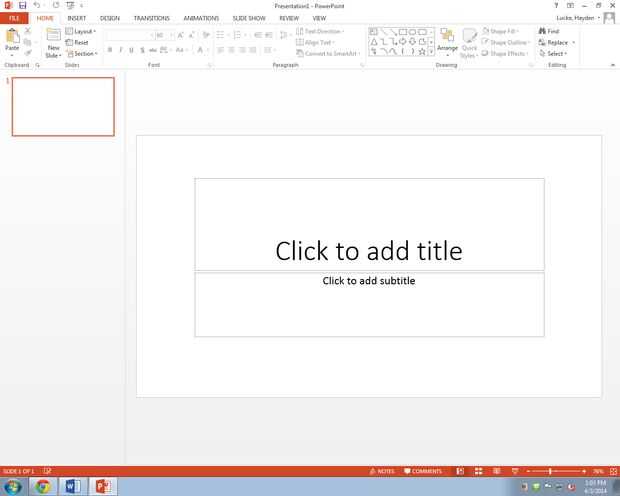 Ahora es el momento para iniciar tu PowerPoint. Para abrir PowerPoint, haga clic en "Inicio" (logo de windows en algunos ordenadores). Luego ir a "Todos los programas", luego "Microsoft Office" y última, haga clic en "Microsoft PowerPoint". Si tienes un Mac, simplemente haga clic en el logo de PowerPoint de la aplicación que descargaste. La versión de su software de PowerPoint no importa, pero debe tener Microsoft Office instalado en su computadora. Una vez abierto el PowerPoint, una diapositiva de título predeterminado aparecerá. Ahora puede introducir el título y su nombre o nombres de los que presentan.