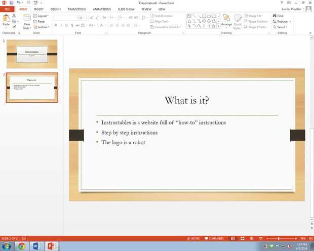 Para agregar un título y contenido diapositiva a la presentación, haga clic en la página de "Inicio" y seleccione "Nueva diapositiva". Un cuadro desplegable aparecerá y usted puede elegir el tipo de diapositiva a insertar. Asegúrese de que cada diapositiva tiene un título para que la audiencia sepa lo que se presenta. Comenzar a añadir viñetas de información de su contorno en las diapositivas. Mantenga sus diapositivas simple y claro. No escriba párrafos en las diapositivas. Existe su PowerPoint como ayuda visual no como un informe.