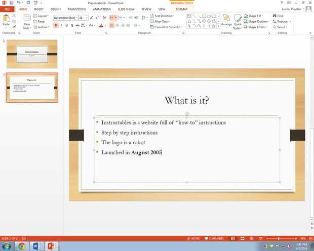Asegúrese de que al ingresar tu información para utilizar la fuente grande para los títulos de las diapositivas (con el diseño elegido en el paso 6 la fuente automáticamente se amplía). Esto contribuirá a mejorar la comprensión del público en lo que se está hablando. También debe negrita estadísticas u otro contenido importante para mostrar el nivel de importancia. Para simplemente resaltar en negrita las palabras arrastrando el cursor sobre ellos mientras haciendo clic y sosteniendo. Haga clic en el negro "B" en la barra de herramientas. Para agrandar la fuente la misma sólo haga clic en el tamaño de fuente en la barra de herramientas y elegir el tamaño a tu gusto.