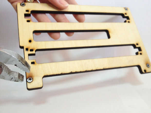 -Enroscar el tornillo de 10mm de M3 en la parte de madera, asegúrese de dejar algunos longitud y atornille en el